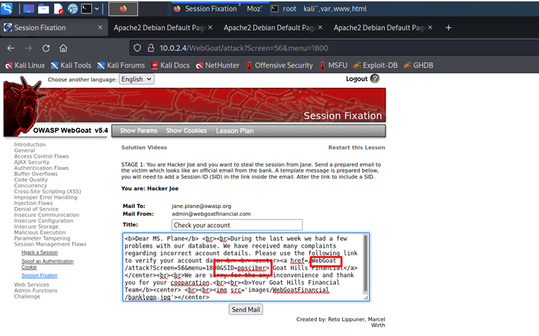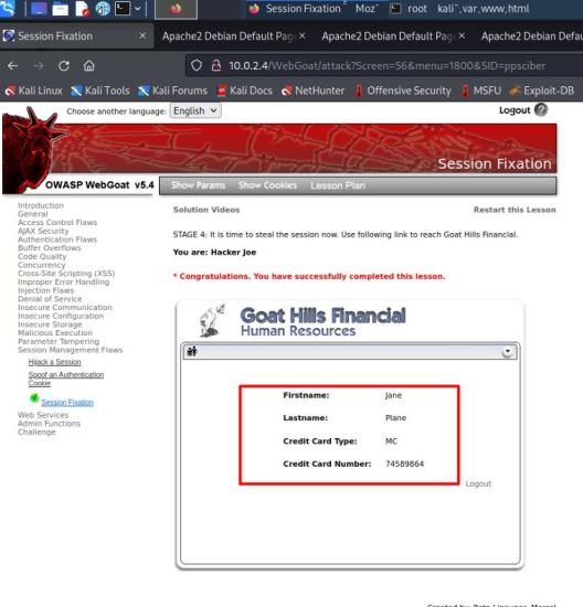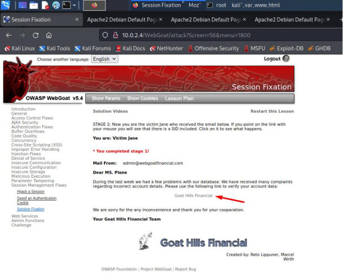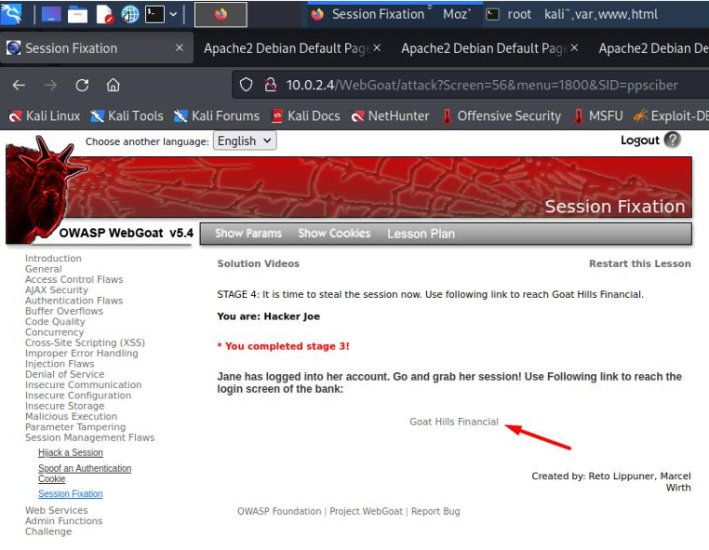 Practical Demonstration of Session Fixation Authentication Bypass Vulnerability in WebGoat Web Application.