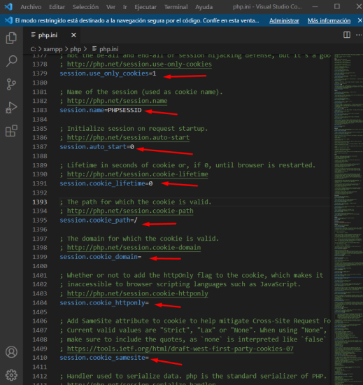 Locating PHP Session Management Configuration Parameters to Mitigate Potential Attack Success.